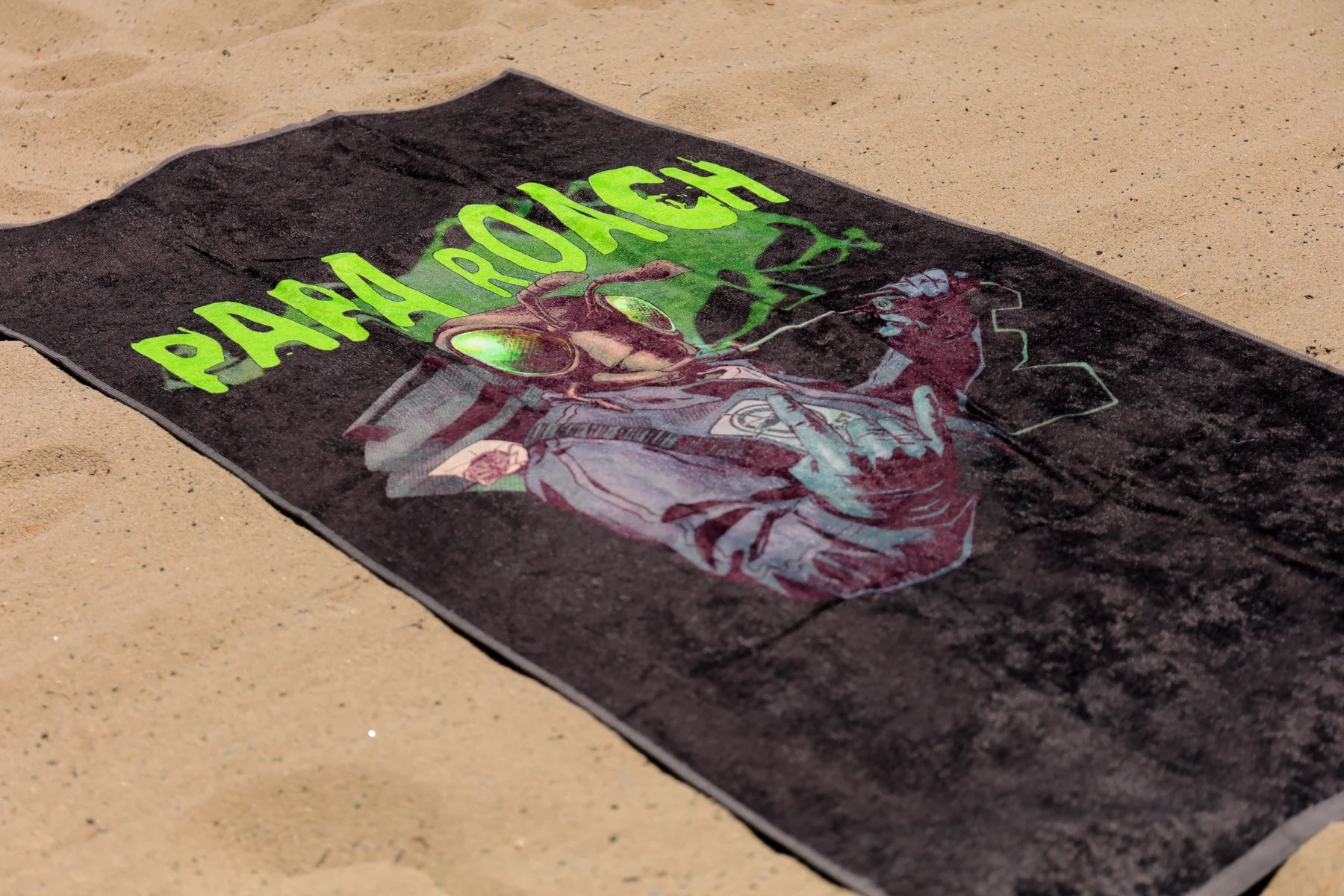 The Papa Roach Exterminator design, sublimated on a 30" x 60" beach towel.